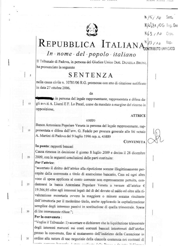 Sentenza Anatocismo Tribunale di Padova Avv Liuzzi